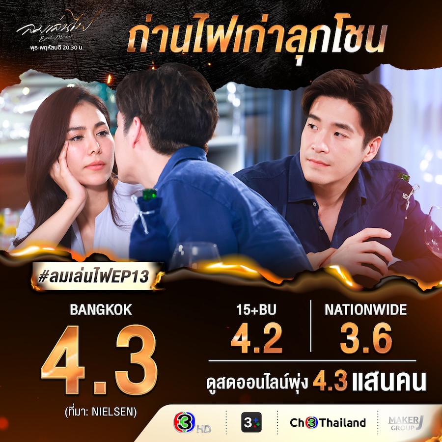 “ลมเล่นไฟ” อีพี12-13 “อาเล็ก-เชอรี่” ถ่านไฟเก่าลุกโชน ทำเรตติ้งพุ่ง