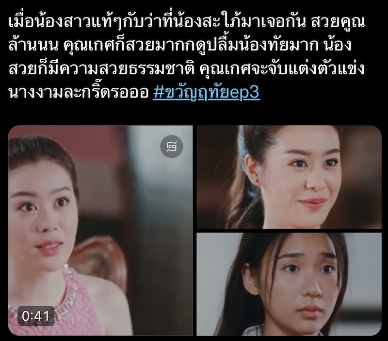 เรียกว่าเล่นละครเรื่องแรก ก็ทำเอาแฟน ๆ ต่างเทคะแนนความสนุกให้หมดหน้าตักกันเลยทีเดียวสัปดาห์นี้ตามมาให้กำลังใจ “ฉัตรเกล้า-ขวัญฤทัย” จะเปิดปากยอมรับหัวใจต่อกันได้เมื่อไหร่ ในละครชุด “ดวงใจเทวพรหม” เรื่อง “ขวัญฤทัย” ทุกวันศุกร์-อาทิตย์ เวลา 20.20 น. ทางช่อง 3 ดูทีวีกด 33 ดูมือถือกด 3Plus
