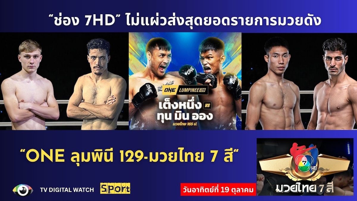 ยกทัพพร้อมบู๊ “ช่อง 7HD” เปิดสังเวียนมวยเดือด วันศุกร์นี้ พบกับ “ONE ลุมพินี 129” นำโดยคู่เอก เต็งหนึ่ง แฟร์เท็กซ์” ท้าชนกับ “ทุน มิน ออง” ร่วมด้วยนักมวยดังมากมาย ขณะที่วันอาทิตย์ “มวยไทย 7 สี” คู่เอกพบกับ “วุฒิไกร ว.จักรวุฒิ” ดวลหมัดกับ “ยอดขุนศึก ศิษย์แก้วประพล
