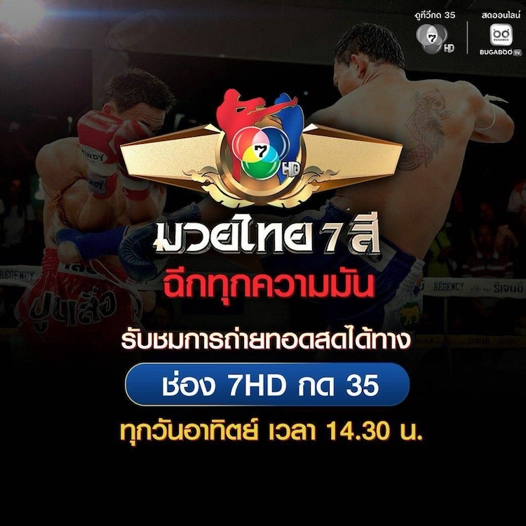 และวันอาทิตย์ที่ 11 มกราคมนี้ พบกับรายการ มวยไทย 7 สี สัปดาห์นี้ส่งคู่เอกใครจะครองเข็มขัดที่ว่างรุ่นเฟเธอร์เวท ฤทธิเดช ลูกเจ้าพ่อโรงต้ม ท้าชนกับ เพชรสยาม จ.ภัทรียากีฬาสยามสุรินทร์ ร่วมด้วยยอดนักมวยไทยให้เชียร์กันคึกคัก พร้อมเปิดให้แฟนกีฬาเข้าร่วมชมและเชียร์ด้วยความสุภาพเรียบร้อย ชมฟรี! เพียง 500 คนแรกเท่านั้น หรือร่วมหรือติดตามชมถ่ายทอดสดจากสนามมวยช่อง 7HD ตั้งแต่เวลา 14.30 น. ติดตามได้ทางช่อง 7HD กด 35