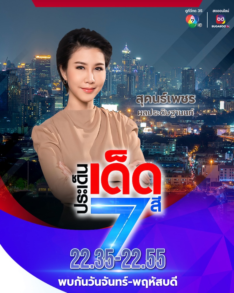 เริ่มจาก “เพชรหอม” สุคนธ์เพชร ผู้ประกาศข่าวสาวมาดแกร่ง ที่พร้อมสรุปประเด็นเด่น อัปเดตข่าวรอบวันในรายการ ประเด็นเด็ด 7 สี ทุกวันจันทร์-พฤหัสบดี เวลา 22.35 น. และวันพุธ 22.30 น.