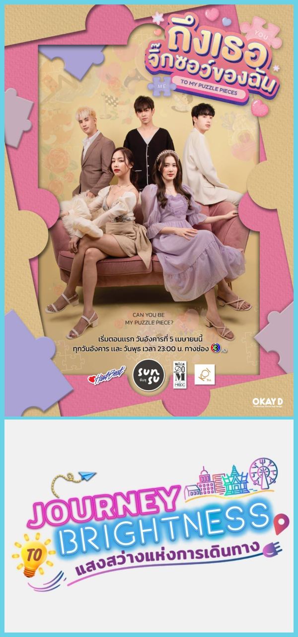 มาสู่โหมดซีรีส์ไทยสุดฮิตที่มีให้ชมกันถึง 2 เรื่อง เริ่มที่เรื่อง “ถึงเธอจิ๊กซอว์ของฉัน” (To My Puzzle Pieces) เรื่องราวของโชคชะตาที่กำลังเล่นตลก ให้หญิงสาวคนหนึ่งเกิดมาพร้อมกับจิ๊กซอว์ที่สามารถจับคู่กับอีกฝ่ายได้ถึง 2 คน ! เธอจะเลือกใคร ? ในโลกที่ทุกคนเกิดมาพร้อมกับจิ๊กซอว์ประจำตัว ที่สามารถจับคู่กับจิ๊กซอว์ของอีกฝ่ายได้เพียงคนเดียว ความอลหม่านและเรื่องราวที่ไม่คาดคิดจึงเกิดขึ้นพร้อมอุปสรรคมากมาย ท้ายสุดเเล้วใครจะเป็นจิ๊กซอว์ที่ถูกเลือก ผลิตโดย บริษัท โอเคดี โปรดักชั่น เฮ้าส์ เเอนด์ ดีไซน์ จำกัด นำแสดงโดย “เติร์ด ลภัส งามเชวง” และ “นาน่า ศวรรยา ไพศาลพยัคฆ์” ติดตามทุกวันอังคาร-พุธ เวลา 23.00-00.00 น. ทางช่อง 3 กด 33 เริ่มตอนแรกวันอังคารที่ 5 เม.ย.65