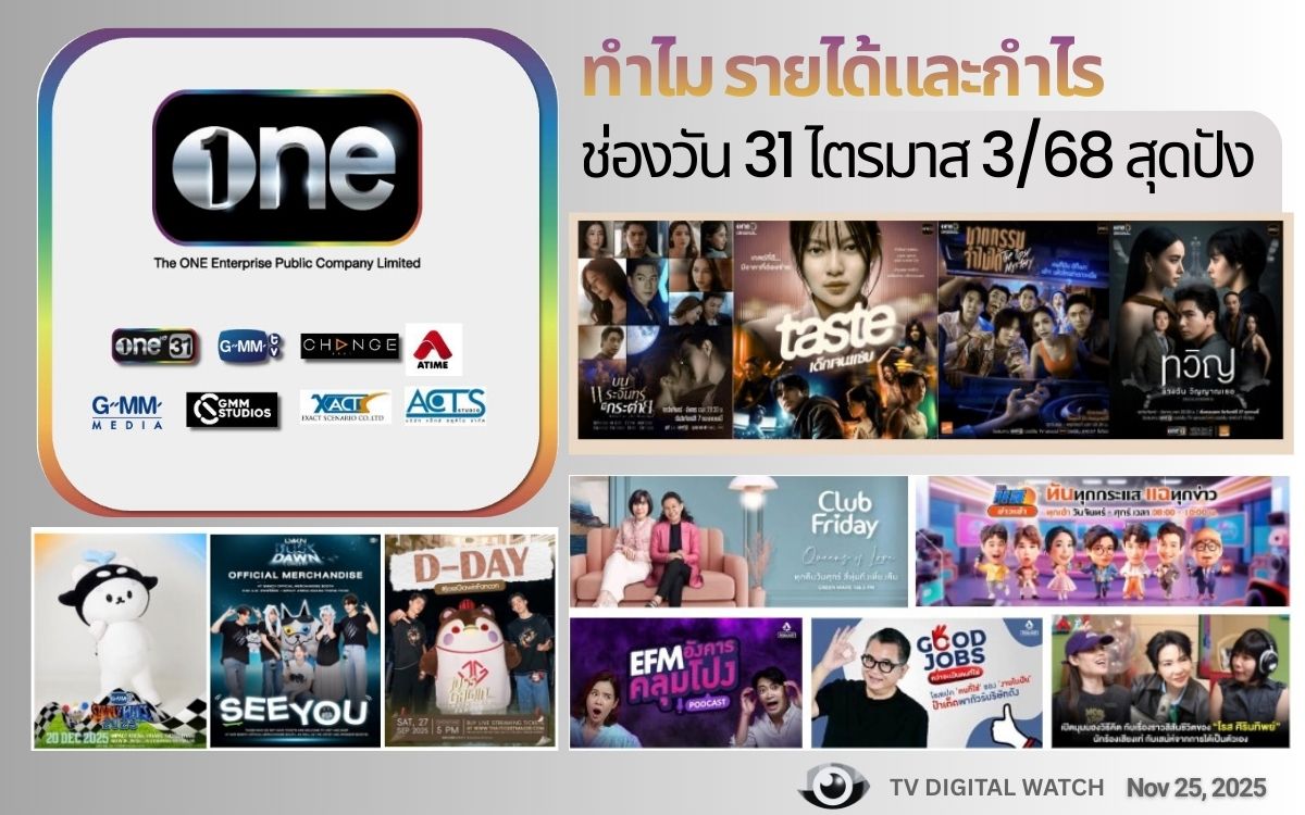 ช่องวัน 31 ที่อยู่ภายใต้ชื่อบริษัท เดอะ วัน เอ็นเตอร์ไพรส์ จำกัด (มหาชน) มีรายได้ และกำไรในไตรมาส 3 ปี 2568 ที่สดใส เมื่อเทียบกับเพื่อนร่วมอุตสาหกรรม ซึ่งจากบทวิเคราะห์ที่บริษัทแจ้งตลาดหลักทรัพย์แห่งประเทศไทย และรายงานที่เผยแพร่ในเว็บถึงนักลงทุนบ่งบอกถึงกลยุทธ์การทำธุรกิจที่น่าติดตาม