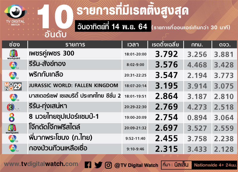 เรตติ้งช่องทีวีดิจิทัลประจำสัปดาห์ที่ 8-14 พ.ย.64 สัปดาห์ครอบคลุมวัน Shopping day ประจำปี วันที่ 11 เดือน 11 สินค้าโหมโปรโมทรายการขายสินค้า เสนอราคาพิเศษรวมถึงการใช้ช่องทางทีวีดิจิทัลเพื่อกระตุ้นการขายสินค้าทางช่องทางออนไลน์ ที่เห็นชัดเจนเป็นการเช่าเวลาช่วงเวลา 6 โมงเย็นของ ช่อง 7 ช่อง One และช่องเวิร์คพอยท์ เพื่อเจาะกลุ่มผู้ชมตามเป้าหมาย