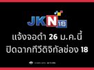 • ปิดฉากทีวีดิจิทัลช่อง 18 แจ้งจอดำ 26 ม.ค.นี้