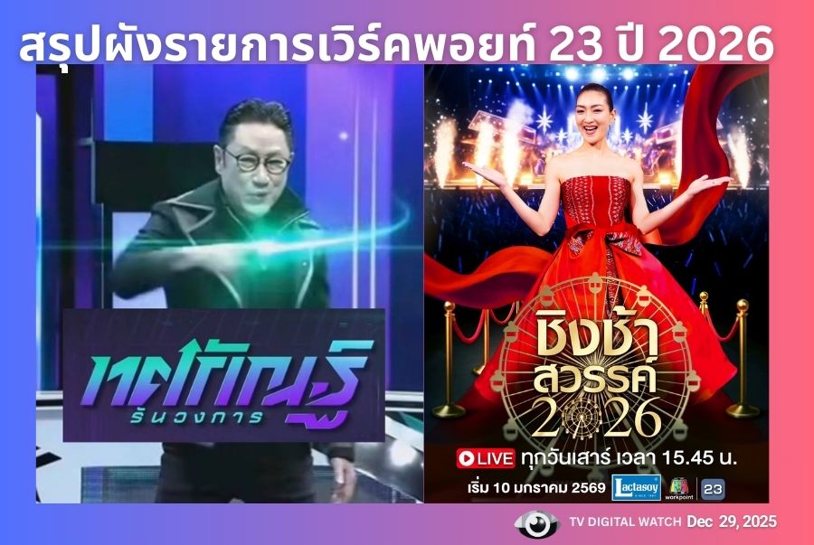 นี้คือบางส่วนของผังรายการช่องเวิร์คพอยท์ 23 ในปี 2026 และยังมีธุรกิจบริหารศิลปินที่น่าสนใจอกีด้วย เรียกได้ว่า ช่องเวิร์คพอยท์ 23 พร้อมส่งแรงบันดาลใจและไอเดียสร้างสรรค์ เพื่อเข้าถึงผู้ชมทุกเพศทุกวัย พร้อมเปิดเวทีและพื้นที่แห่งโอกาสให้คนรุ่นใหม่ได้ต่อยอด Passion ที่หลากหลาย และแสดงศักยภาพในแบบของตัวเองได้อย่างเต็มที่