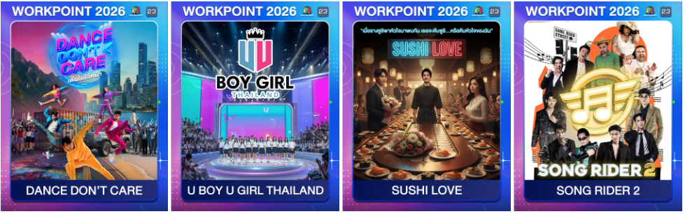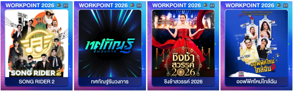 เวิร์คพอยท์ 23 เปิดผังรายการปี 2026 นอกเหนือจากรายการยอดฮิตระดับตำนาน อย่าง ทศกัณฐ์รันวงการ และชิงช้าสวรรค์ 2026 ยังเปิดพื้นที่ให้ YOUNG GEN หลากหลาย PASSION ด้วยแนวคิด “IGNITE YOUNG PASSION” ได้ร่วมแสดงออกผ่านเนื้อหา ทั้งดนตรี กีฬา บันเทิง และวิชาการต่อยอด COMMUNITY ให้เติบโตไปพร้อมกัน